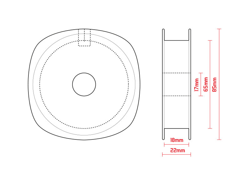 Carrete universal fabricado de plástico duro. Especialmente adecuado para tiendas de pesca que proporcionan a sus clientes pequeñas cantidades de hilo desde carretes de gran capacidad. Es apto tanto para sedales trenzados como para líneas de pesca.
